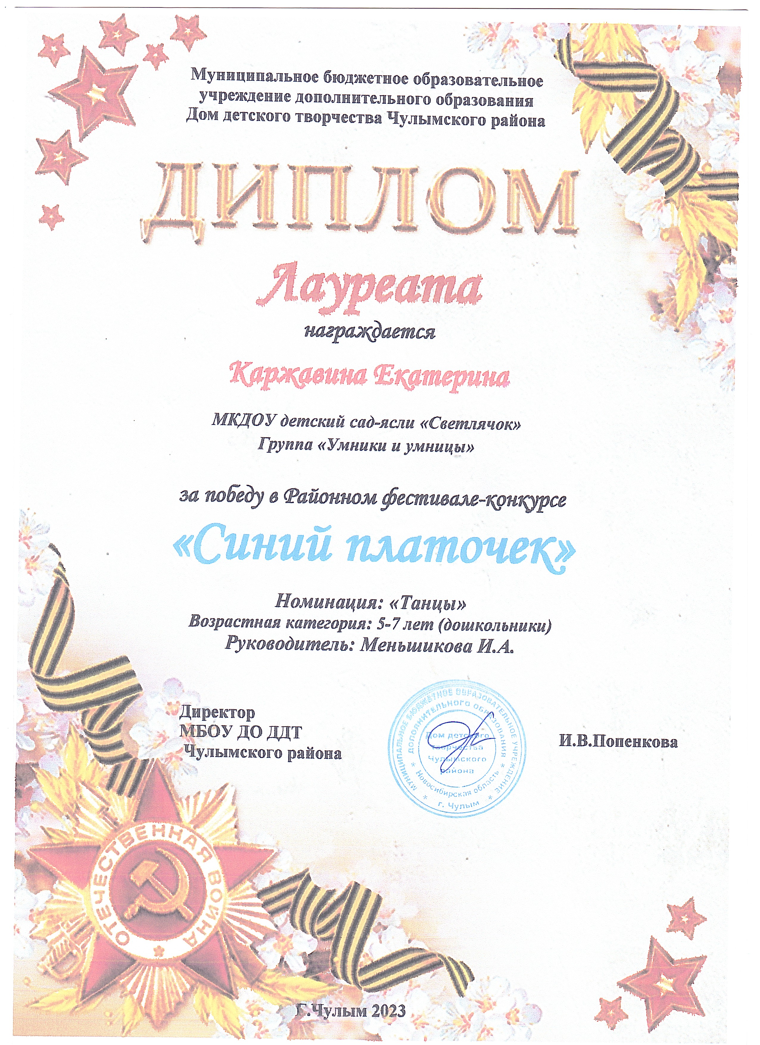 Диплом участника Каржавина Катя