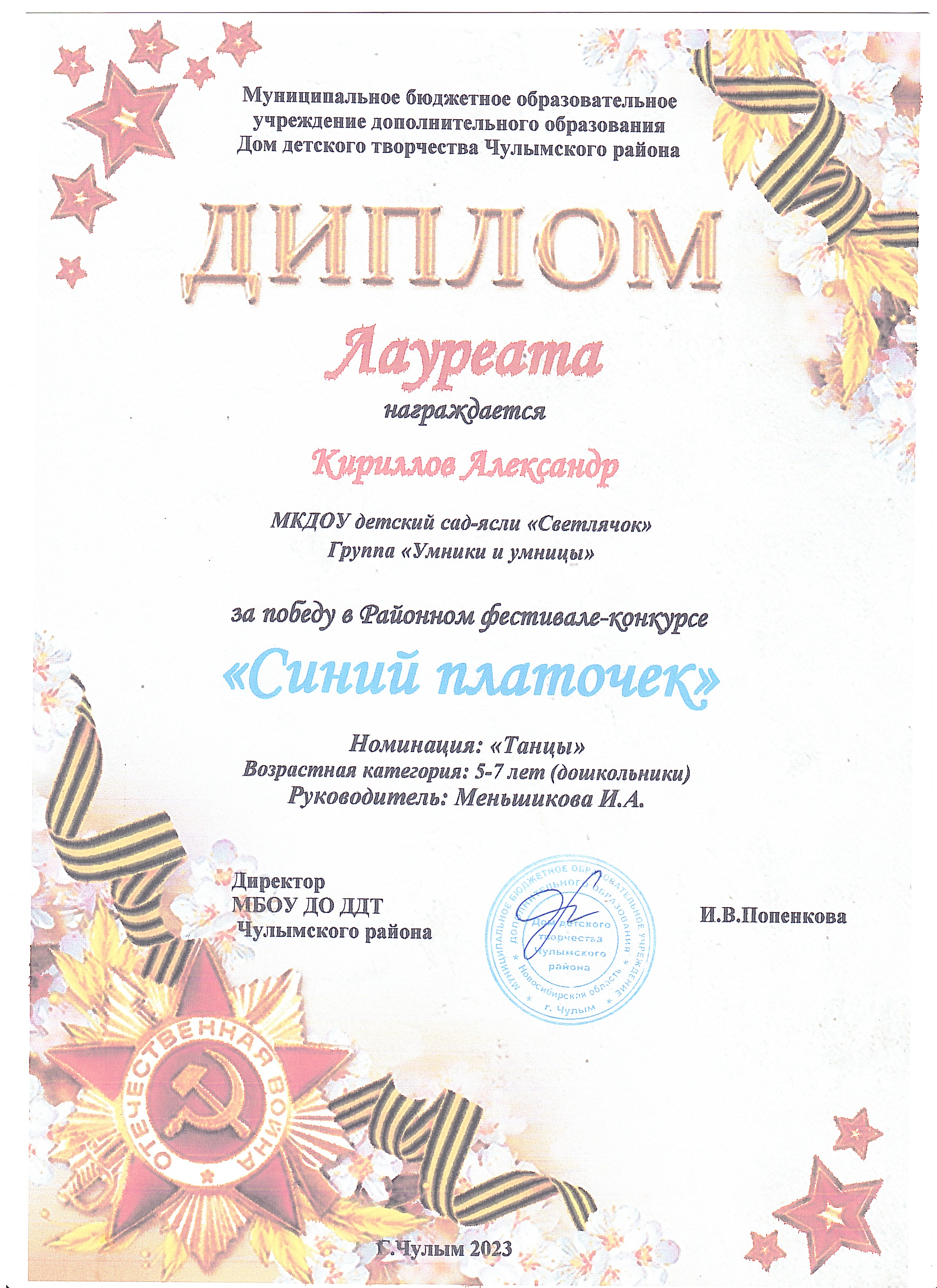 Коллектив воспитанников МКДОУ детский сад-ясли "Светлячок" - ПРИЗЁРЫ Диплом 3 степени