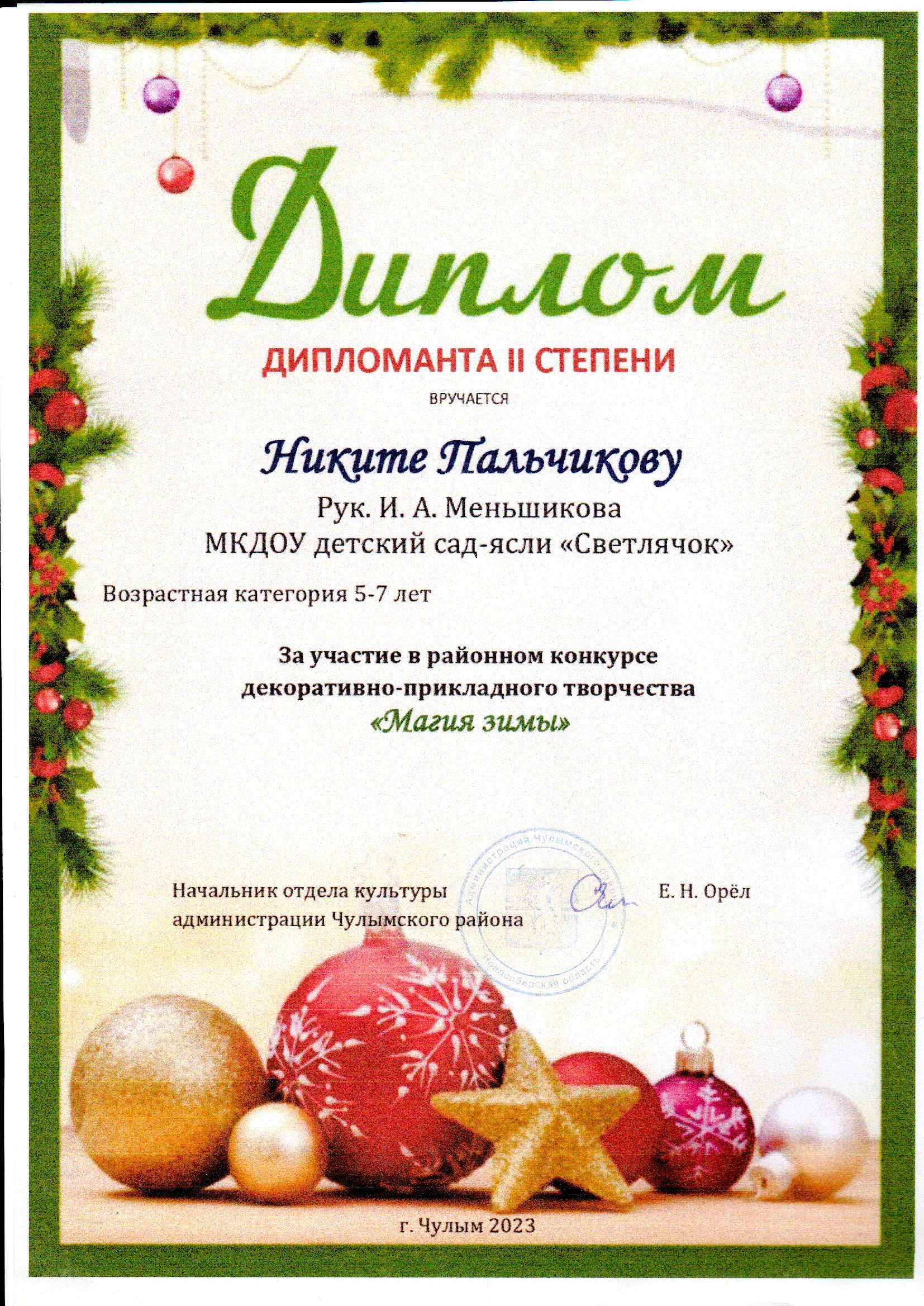 Никита Пальчиков - Диплом 2 степени