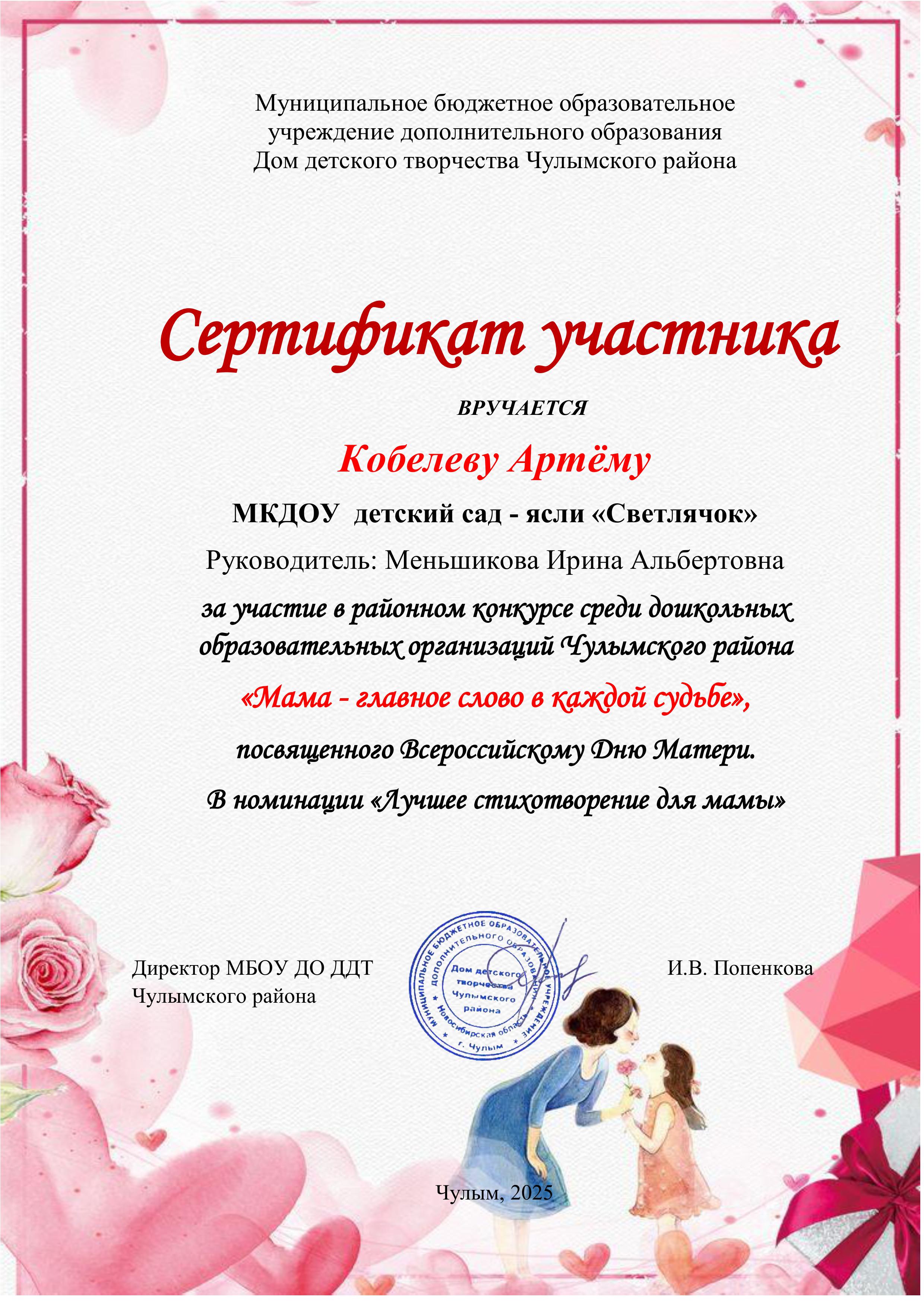 Кобелев Артём Сертификат за участие