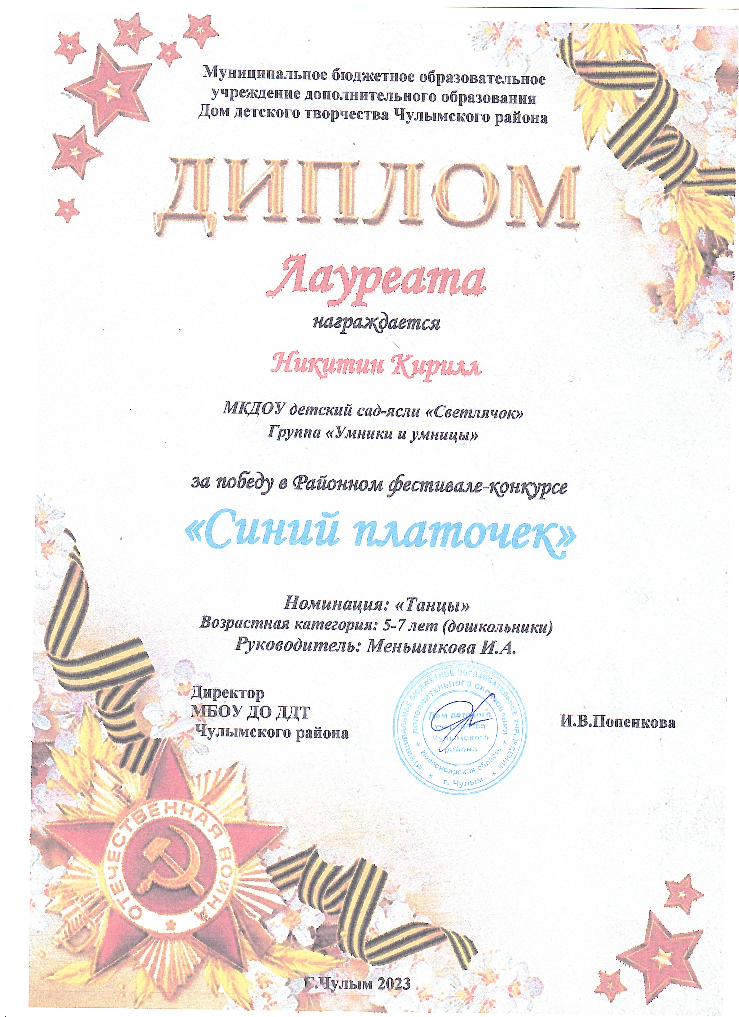 Диплом участника Никитин Кирилл