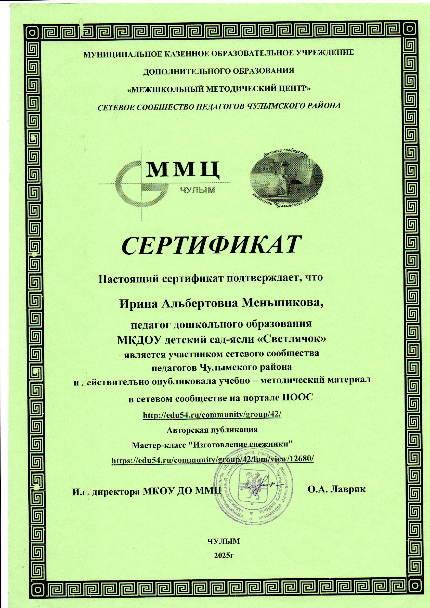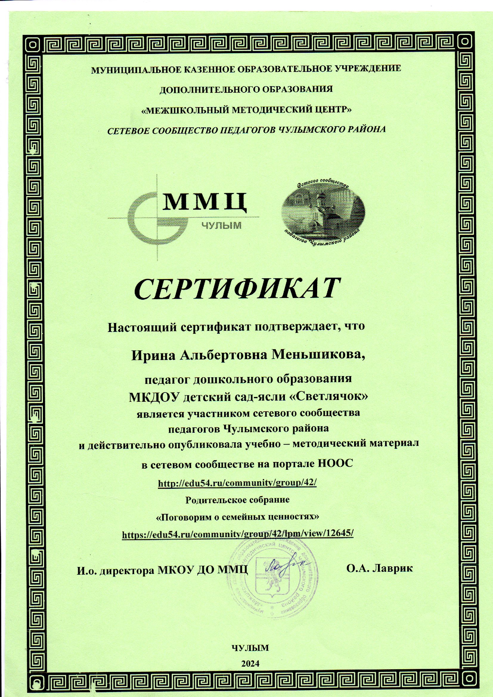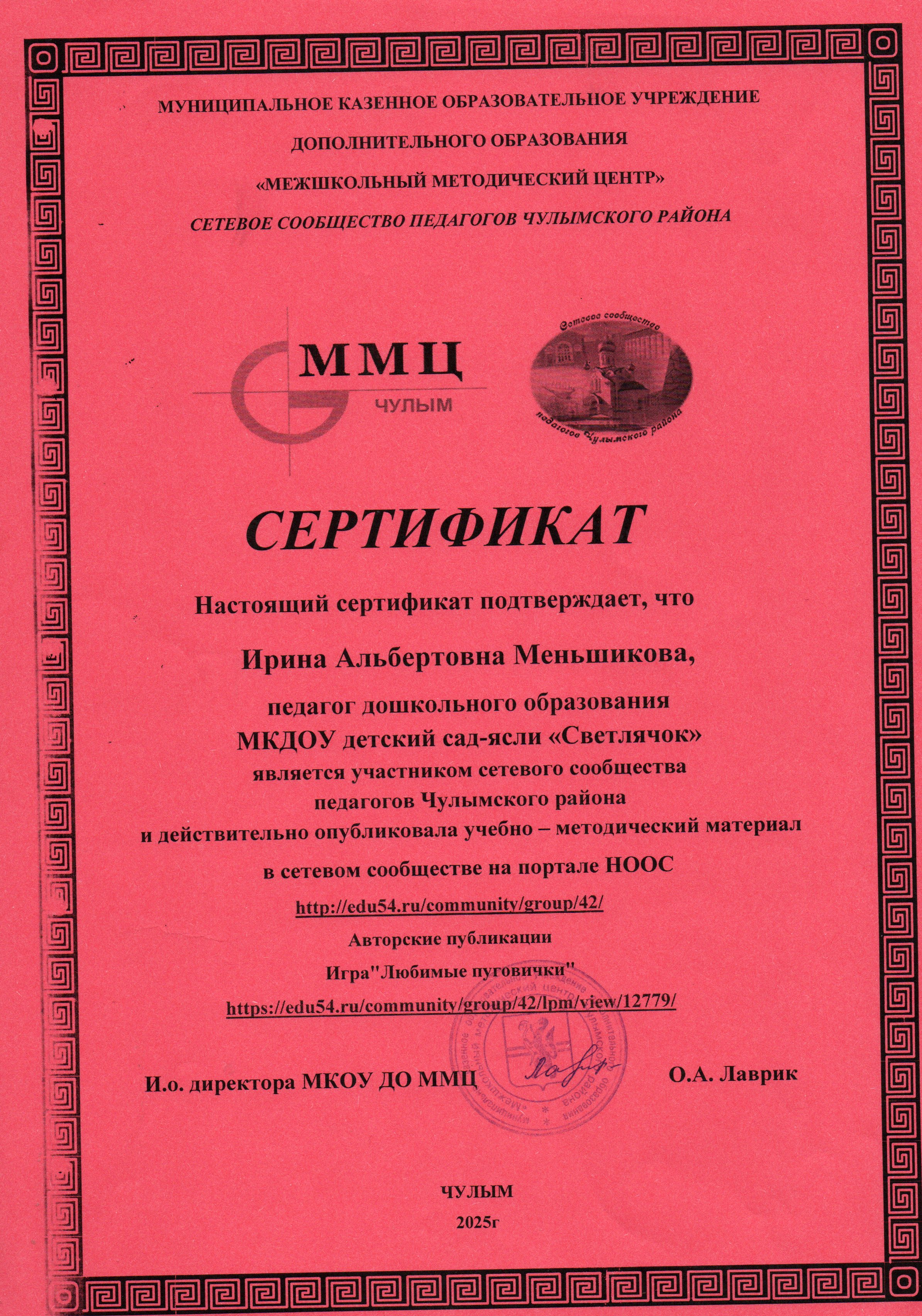 Меньшикова Ирина Альбертовна