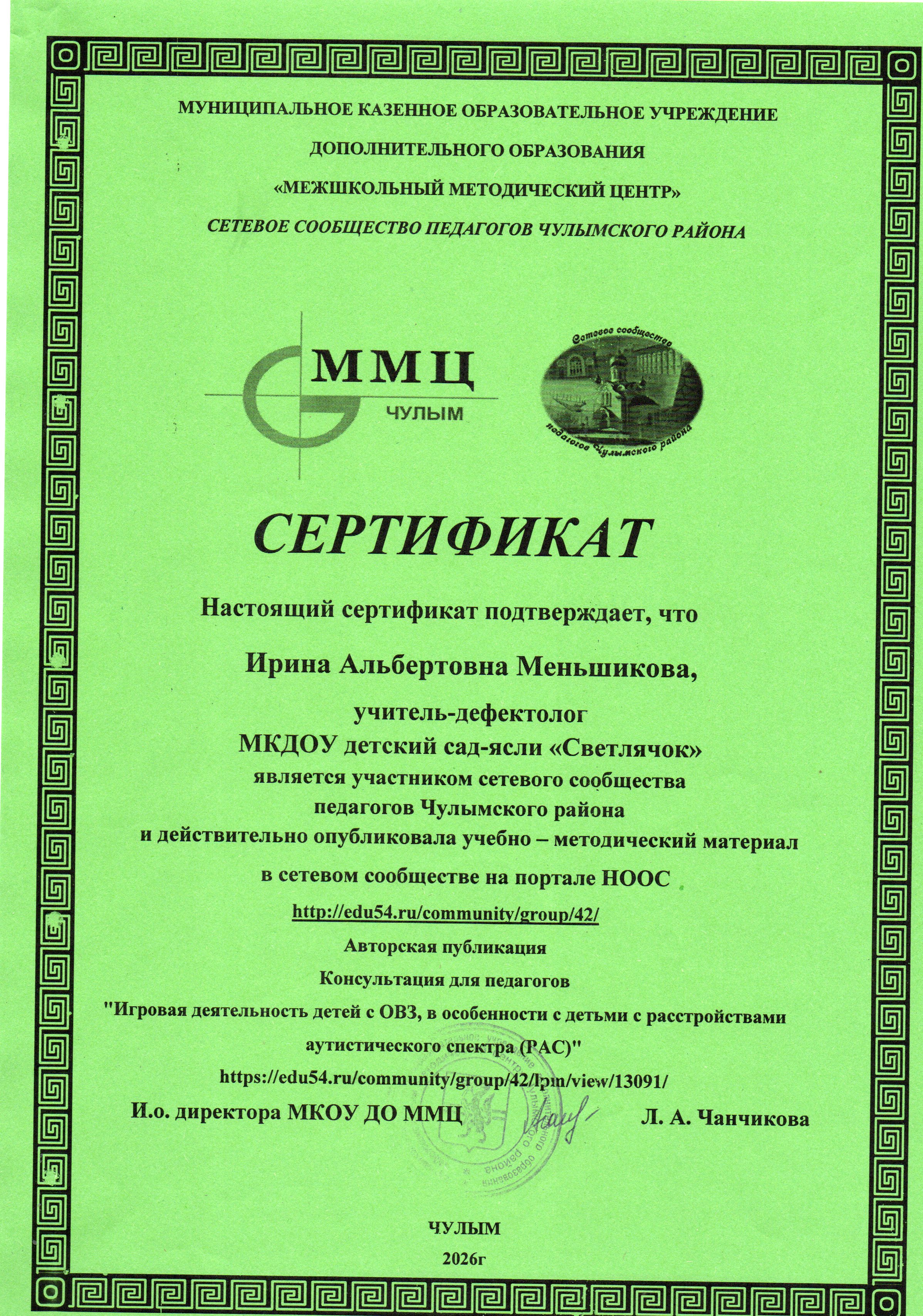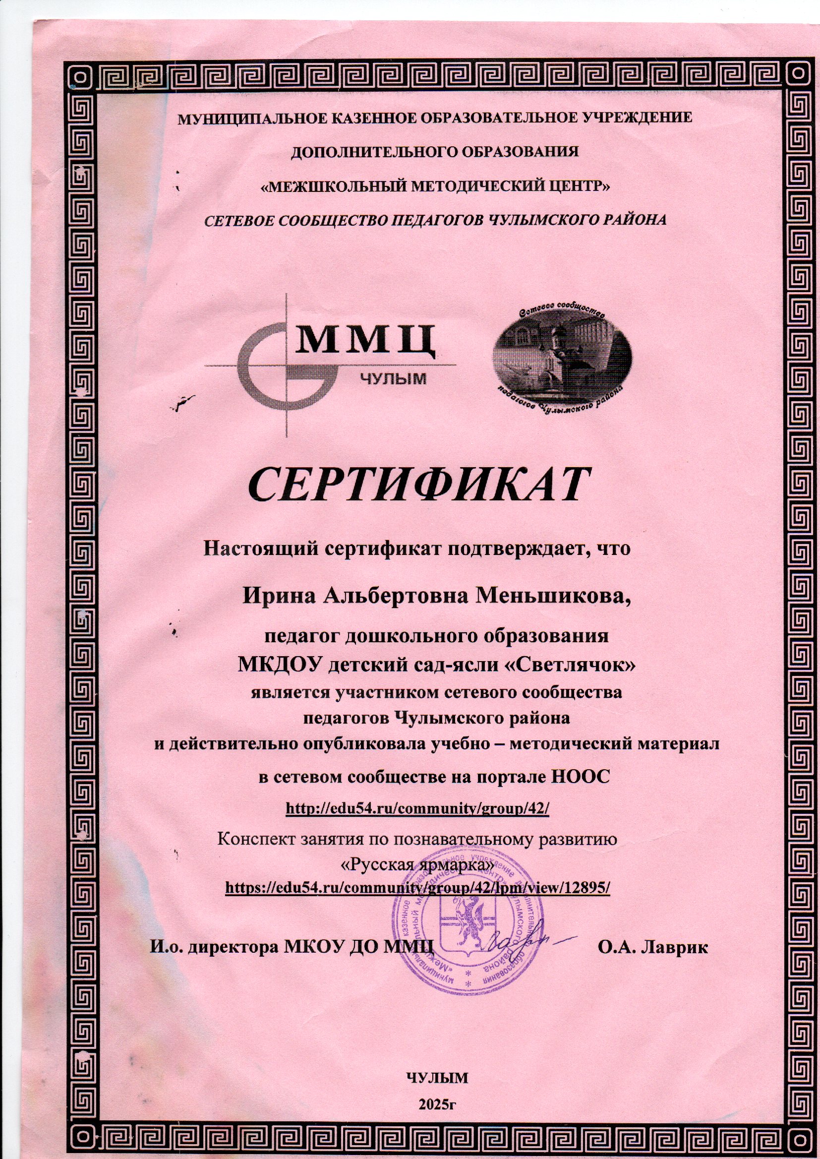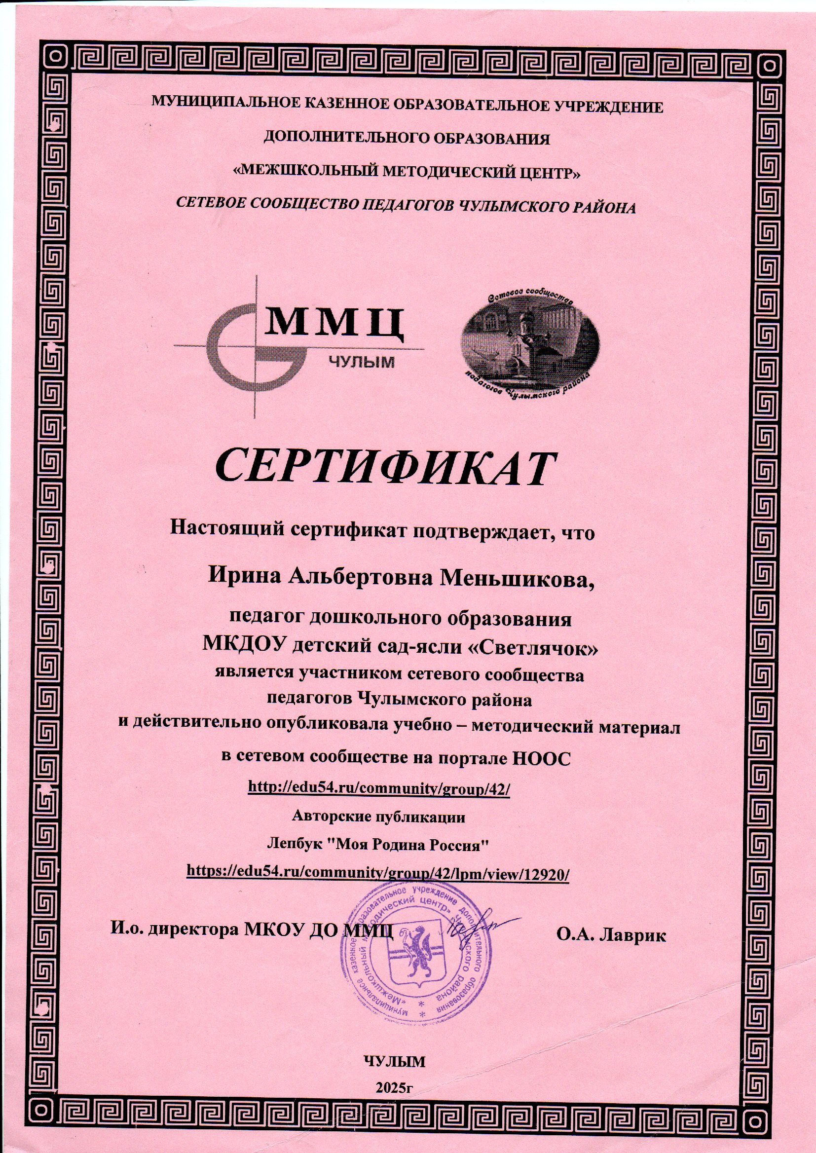 Меньшикова Ирина Альбертовна